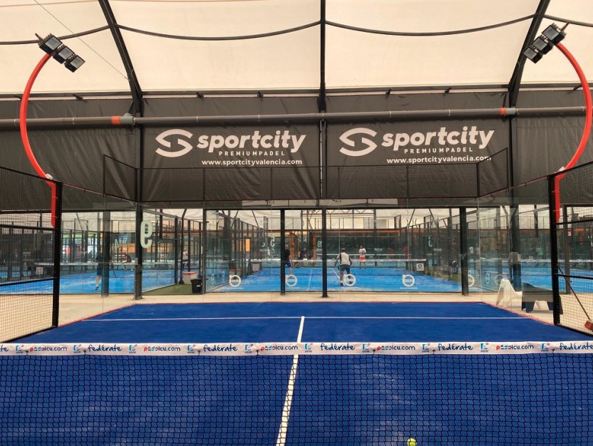 Iluminación pista de padel compuesto por: 4 columnas de 6 mts de altura integrados en la estructura